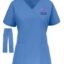 - This scrub top has a feminine fit and is made with a 65/35 poly/cotton blend fabric that is more durable than traditional scrub tops.Â